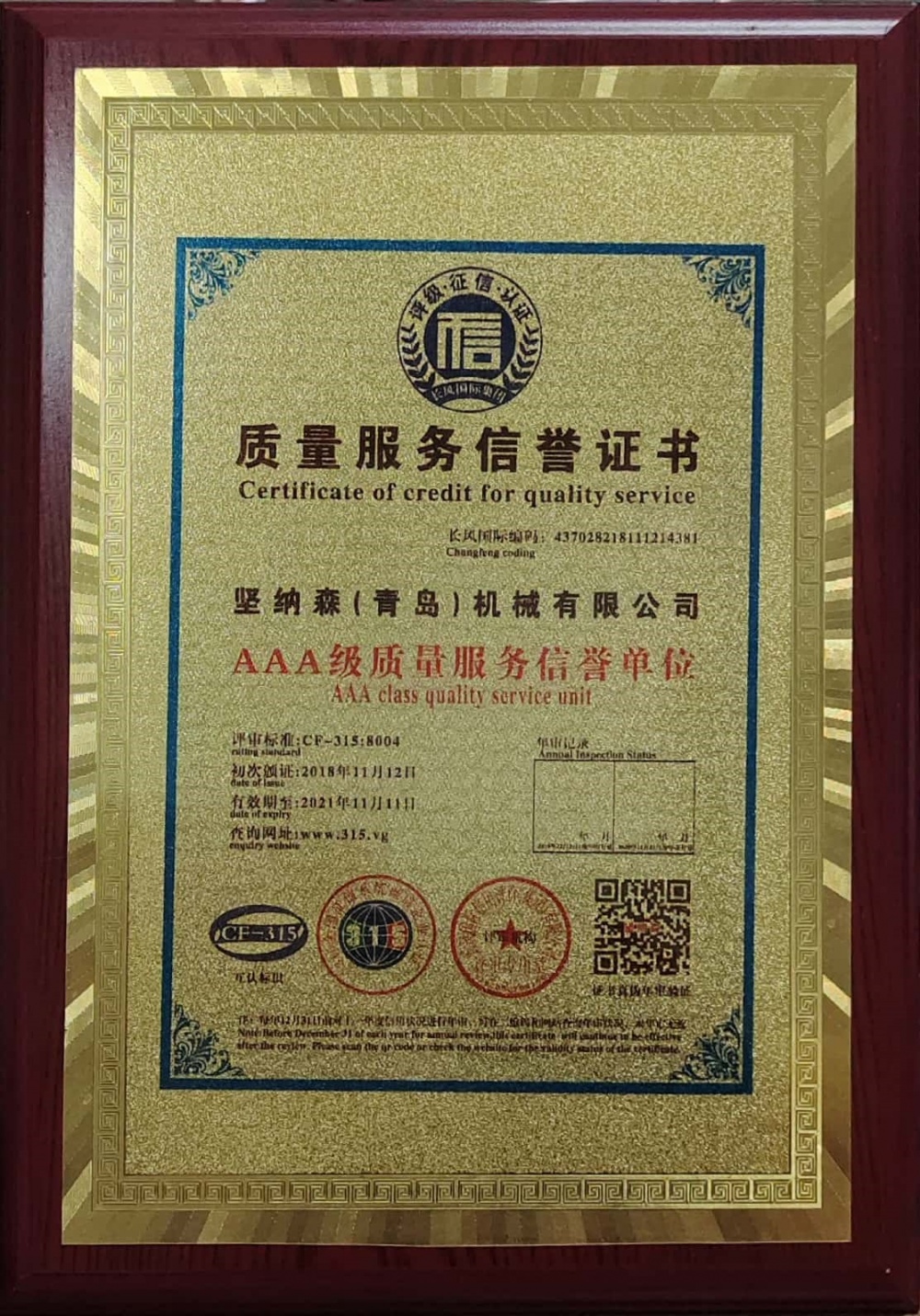 質(zhì)量服務(wù)信譽(yù)證書(shū)